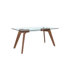 Mesa comedor rectangular cristal templado y nogal Mesa comedor rectangular cristal templado y nogal
